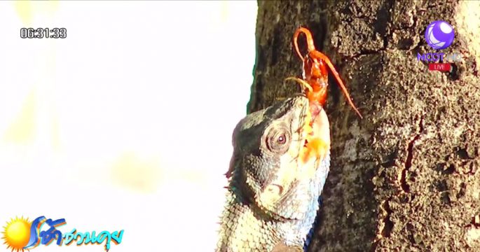 เปิดคลิประทึก! กิ้งก่าเฒ่าเขมือบตะขาบกินทั้งตัว