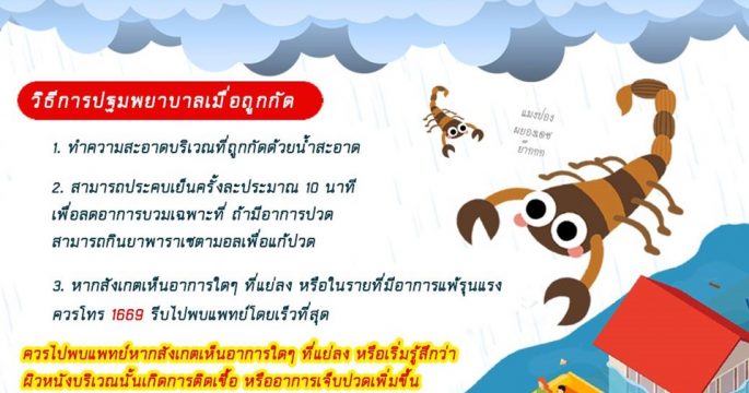 สพฉ.เตือนประชาชนในพื้นที่น้ำท่วม ระวังสัตว์มีพิษกัด พบ‘แมงป่อง-ตะขาบ-งู’ มากับน้ำท่วมมากที่สุด พร้อมแนะวิธีปฐมพยาบาลเบื้องต้น