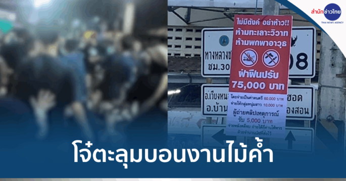 กลุ่มวัยรุ่นตะลุมบอนชกต่อยกันในงานแห่ไม้ค้ำโพธิ์ จ.เชียงใหม่ ขณะที่ผู้จัดงานติดป้ายเตือนทะเลาะวิวาทในงาน จับได้ปรับ 75,000 มอบให้คนถ่ายคลิป 5,000