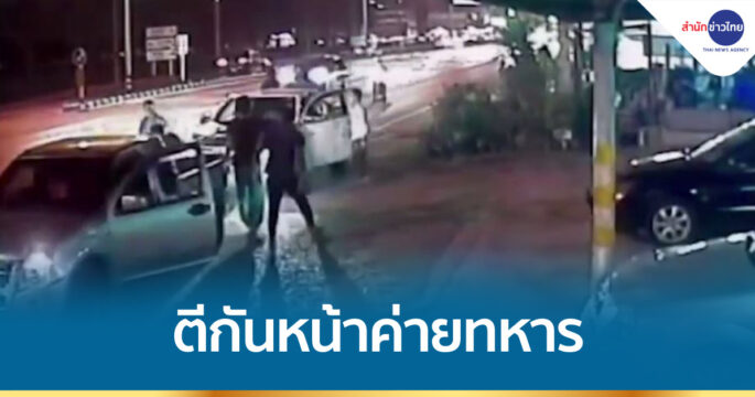 วัยรุ่น 2 กลุ่ม ขับรถมาจอดฝั่งตรงข้ามหน้าค่ายทหาร จ.ลพบุรี ก่อนจะลงมาก่อเหตุชกต่อยกันอุตลุด ทหารวิ่งข้ามมาห้ามทัพ ทั้งสองฝ่ายจึงแยกย้ายไป
