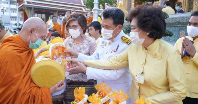 นายกรัฐมนตรี นำคณะรัฐมนตรี ข้าราชการ และประชาชนทุกหมู่เหล่า ทำบุญตักบาตรพระสงฆ์ 145 รูป ถวายเป็นพระราชกุศล เนื่องในโอกาสวันเฉลิมพระชนมพรรษา สมเด็จพระนางเจ้าฯ พระบรมราชินี 3 มิถุนายน 2565