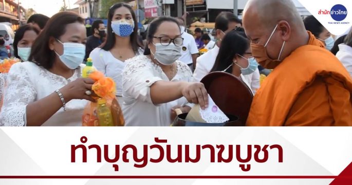 พุทธศาสนิกชน ร่วมทำบุญตักบาตรข้าวสารอาหารแห้งเนื่องในวันมาฆบูชา ที่วัดพระมหาธาตุวรมหาวิหาร จ.นครศรีธรรมราช และร่วมสืบสานประเพณีแห่ผ้าขึ้นธาตุ ภายใต้มาตรการป้องกันโควิด-19