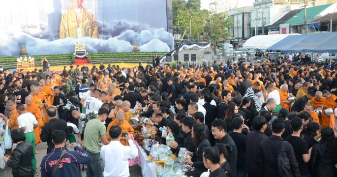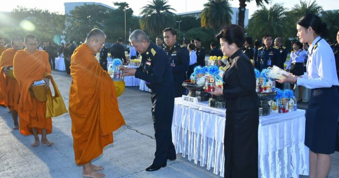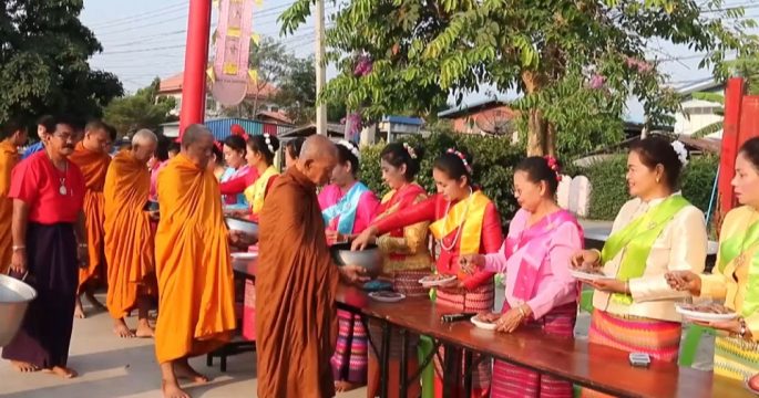 ลพบุรีตักบาตรข้าวเหนียวแดงวันตรุษไทยรับสงกรานต์