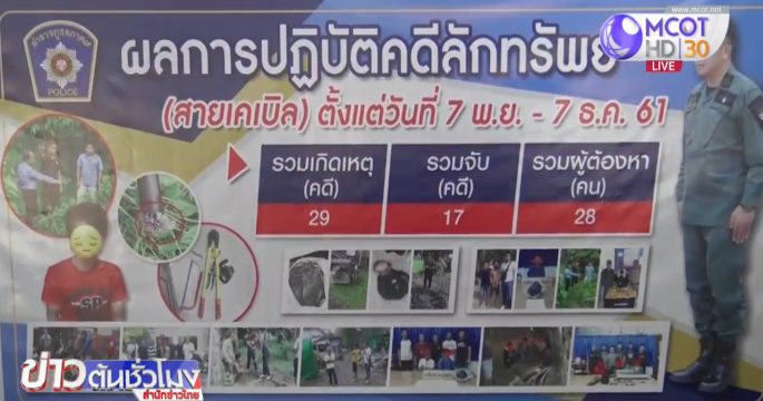 ตำรวจ สน.บางขุนเทียน บุกจับกุม 13 ผู้ต้องหาลักลอบตัดสายเคเบิลได้ทันควัน หลังตระเวนลักลอบตัดสายเคเบิลโทรศัพท์รวมความยาวกว่า 400 เมตร ความเสียหายกว่า 1.4 ล้านบาท