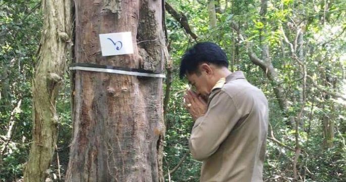 จนท.อุทยานแห่งชาติกุยบุรี ตัดและแปรรูปไม้จันทน์หอมเสร็จเรียบร้อย