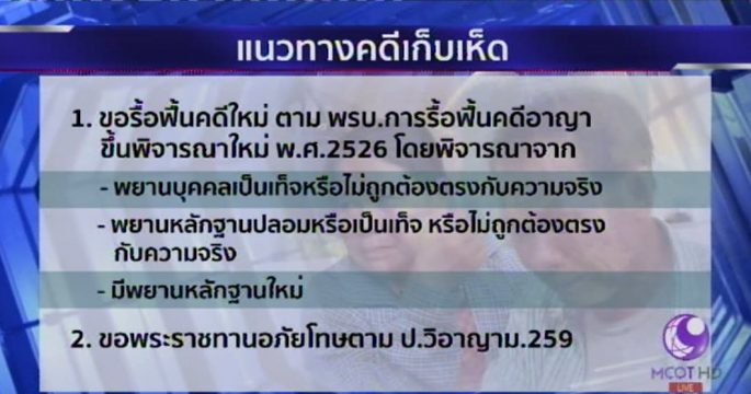 สำหรับแนวทางต่อสู้คดีของสองสามีภรรยาชาวกาฬสินธุ์ พบว่ามี 2 แนวทาง คือ ทั้งการยื่นขอรื้อฟื้นคดีขึ้นมาพิจารณาใหม่ รวมถึงขอพระราชทานอภัยโทษ