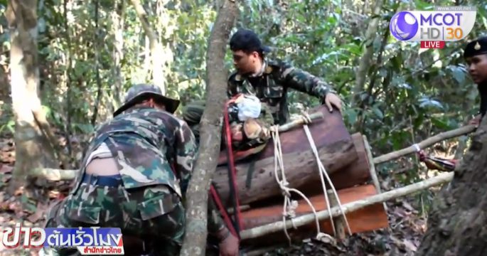 ยึดไม้พะยูง 3 ท่อนมูลค่าเกือบ 1 ล้านบาทซุกซ่อนกลางป่าลึก