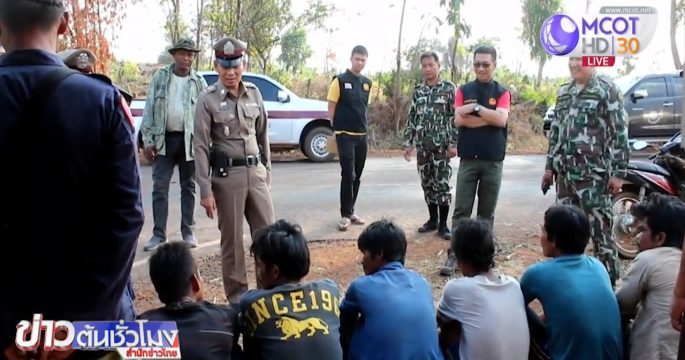 เจ้าหน้าที่อุทยานฯ ทับลาน สนธิกำลังหลายฝ่าย รวบชายฉกรรจ์ชาวกัมพูชา 18 คน ลักลอบตัดไม้พะยูง ทั้งหมดสารภาพ มีคนไทยคอยนำทางแต่ยังไม่ทันลงมือ