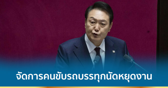 โซล 25 พ.ย.- ประธานาธิบดียุน ซอก-ยอลของเกาหลีใต้เตือนว่า รัฐบาลอาจเข้าไปยุติการนัดหยุดงานทั่วประเทศของคนขับรถบรรทุก เพราะการจับห่วงโซ่อุปทานของประเทศเป็นตัวประกันในช่วงที่มีวิกฤตเศรษฐกิจ เป็นสิ่งผิดกฎหมายและไม่สามารถยอมรับได้ ประธานาธิบดียุนโพสต์เฟซบุ๊กเมื่อเย็นวันพฤหัสบดีว่า การส่งออกคือสิ่งที่จะเอาชนะภาวะไร้เสถียรภาพทางเศรษฐกิจและความผันผวนของตลาดเงิน สาธารณชนจะไม่ยอมทนต่อการจับระบบโลจิสติกส์เป็นตัวประกันในช่วงที่ประเทศเผชิญวิกฤต หากการไม่ยอมขนส่งอย่างไร้ความผิดชอบยังคงดำเนินต่อไป รัฐบาลไม่มีทางเลือกนอกจากพิจารณาใช้มาตรการต่าง ๆ หนึ่งในนั้นคือการใช้คำสั่งให้กลับไปทำงาน กฎหมายเกาหลีใต้บัญญัติไว้ว่า หากการขนส่งสะดุดอย่างร้ายแรง รัฐบาลอาจออกคำสั่ง เช่น คำสั่งบังคับให้คนทำงานด้านการขนส่งกลับไปทำงาน ผู้ฝ่าฝืนจะมีโทษจำคุกสูงสุด 3 ปี หรือปรับสูงสุด 30 ล้านวอน (ราว 810,000 บาท) หากรัฐบาลยุนตัดสินใจใช้ทางเลือกนี้ก็จะเป็นครั้งแรกของประเทศ นายวอน ฮี-รยง รัฐมนตรีคมนาคมเผยกับสื่อในวันนี้ว่า รัฐบาลได้เริ่มเตรียมการในเรื่องนี้แล้ว ขณะที่แกนนำสหภาพแรงงานคนขับรถบรรทุกขนส่งสินค้าเผยว่า จำเป็นต้องนัดหยุดงาน เนื่องจากรัฐบาลไม่คิดฟื้นการเจรจาที่ระงับไป และขณะนี้รัฐบาลขู่จะตอบโต้อย่างแข็งกร้าวโดยไม่คิดหาทางหยุดยั้งการนัดหยุดงานแต่อย่างใด สมาคมการค้าระหว่างประเทศเกาหลีแจ้งว่า ในวันแรกของการนัดหยุดงานที่เริ่มตั้งแต่วันพฤหัสบดี สมาคมฯ ได้รับเรื่องร้องเรียน 19 ครั้ง มีตั้งแต่เรื่องไม่สามารถนำวัตถุดิบเข้ามาผลิต ค่าขนส่งปรับตัวสูงขึ้น การขนส่งล่าช้า การถูกปรับ ไปจนถึงการถูกคู่ค้าต่างประเทศยกเลิกคำสั่งซื้อ สหภาพแรงงานฯ ประเมินว่า มีคนขับรถบรรทุกร่วมเคลื่อนไหว 25,000 คน จากทั้งหมด […]