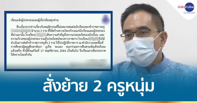 สั่งย้าย 2 ครูหนุ่มโรงเรียนสตรีชื่อดังภูเก็ต ช่วยราชการเขตพื้นที่มัธยมศึกษาฯ พร้อมตั้งกรรมการสอบข้อเท็จจริง หลังมีการแฉอ้างเป็นแชทข้อความคำพูดไม่เหมาะสมส่อไปในทางอนาจาร ด้านผู้ปกครองขอให้ผู้รับผิดชอบเร่งลงโทษ เพื่อจะได้ไม่กระทำอีก