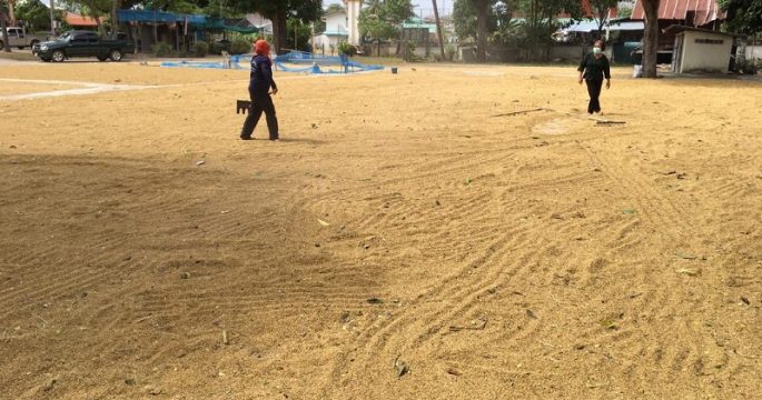 เปิดลานหน้าเมรุ ให้ชาวนาตากข้าวเปลือก ไม่ต้องกลัวหาย