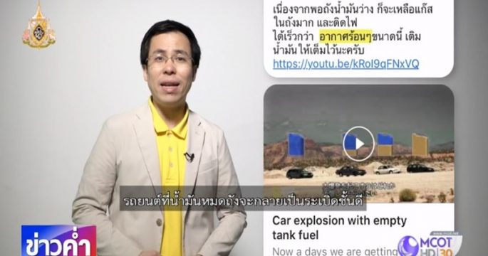 บนสังคมออนไลน์แชร์เตือนว่าอากาศร้อนๆ จะต้องเติมน้ำมันให้เต็มถังไว้ก่อน เพราะรถที่น้ำมันหมดถังจะกลายเป็นระเบิดชั้นดี เรื่องนี้จริงหรือไม่ ติดตามจากศูนย์ชัวร์ก่อนแชร์