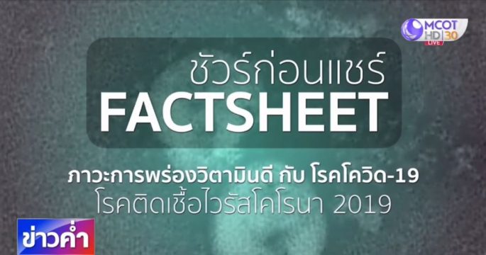 บนสังคมออนไลน์มีการแชร์ข้อมูลข่าวสารเกี่ยวกับภาวะการขาดวิตามินดี ซึ่งอาจเกี่ยวข้องกับความรุนแรงของโรคโควิด-19 แต่ข้อเท็จจริงเรื่องนี้เป็นอย่างไร ? ติดตามจากศูนย์ชัวร์ก่อนแชร์
