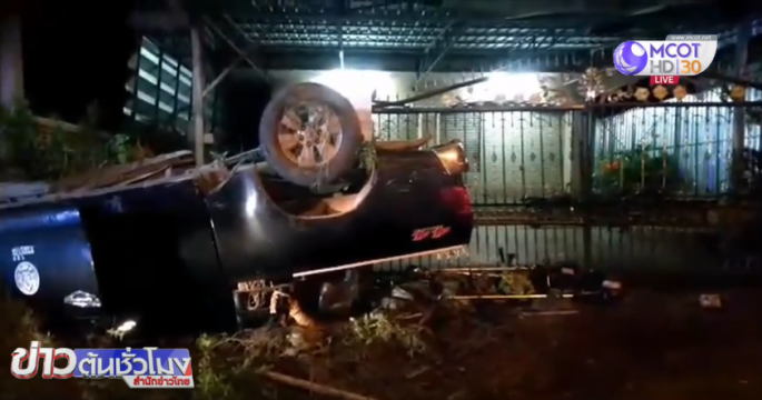 กระบะสายตรวจกรมป่าไม้ หักหลบจักรยานยนต์ขี่ตัดหน้า เสียหลักพลิกคว่ำชนรั้วบ้านคน ถนนสายแม่สอด-ท่าสองยาง โชคดีที่คาดเข็มขัดนิรภัย ทำให้รอดตาย