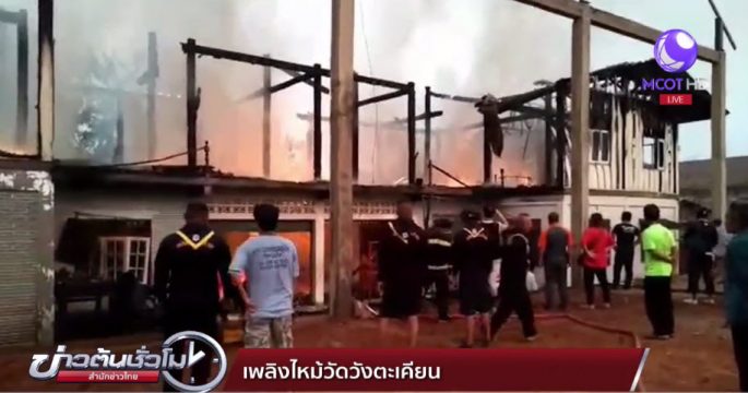 ศาลาไม้สักทอง 2 ชั้น อายุกว่า 50 ปี ของวัดวังตะเคียน ตำบลท่าสายลวด จังหวัดตาก ถูกเพลิงไหม้เมื่อช้วงเช้าที่ผ่านมา เสียหายทั้งหลัง