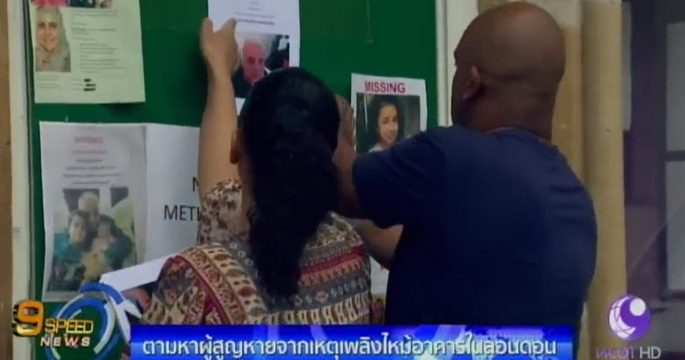 ครอบครัวนายฮีชัม เราะห์มาน ออกตามหานายฮีซัม ผู้สูญหายจากเหตุเพลิงไหม้อาคารเกรนเฟลทาวเวอร์ในกรุงลอนดอนเมื่อคืนวันพุธที่ผ่านมา