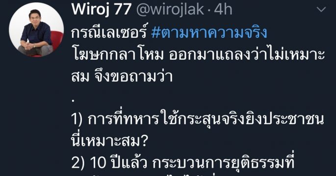 “วิโรจน์” ถามกลับโฆษกกลาโหม 3 ข้อ ปมยิงเลเซอร์ตามหาความจริง ท้าดีเบตทหารกับประชาชน