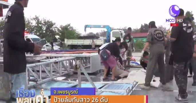 เมื่อช่วงเย็นวานนี้ ที่จ.เพชรบูรณ์ เกิดเหตุสลด เมื่อลมพายุพัดป้ายขนาดใหญ่ล้มทับหญิงสาวเคราะห์ร้ายวัย 26 ปีเสียชีวิตคาที่