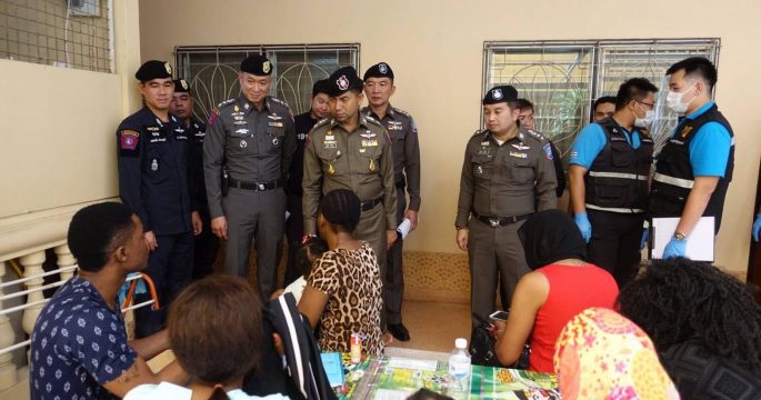 ตำรวจท่องเที่ยวจับไกด์เถื่อนต่างชาตินับ 100 ร่วมเครือข่ายทัวร์ศูนย์เหรียญ ขณะอบรมวิธีการเชือดนักท่องเที่ยว ที่โรงแรมย่านเหม่งจ๋าย ใกล้สถานทูตลาว และสถานทูตกัมพูชา