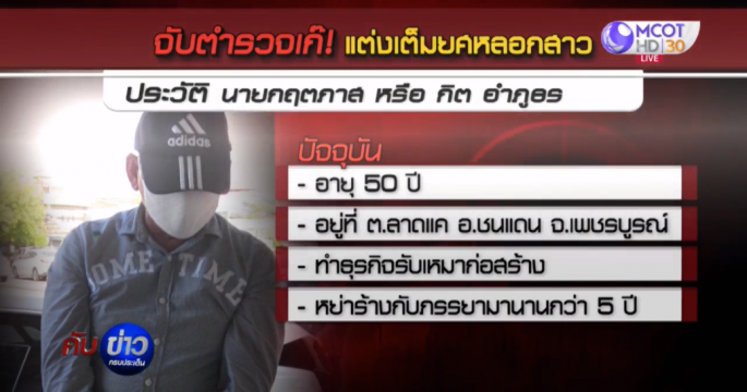 กองปราบรวบตำรวจปลอม หนีคดี 13 ปี ข้อหาปลอมเอกสารราชการ, พ.ร.บ.อาวุธปืนฯ, สวมเครื่องแบบโดยไม่มีสิทธิ และซ่องโจร ขณะถูกจับยังแต่งตัวคล้ายตำรวจอยู่ อ้างรักอาชีพนี้