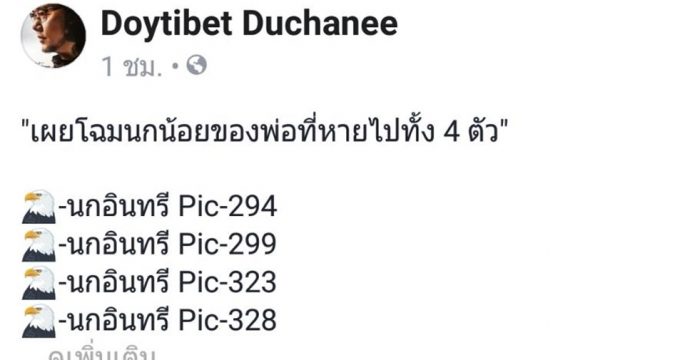 ‘ดอยธิเบศร์’ เผยภาพนกอินทรี 4 ภาพที่ตำรวจยึดได้