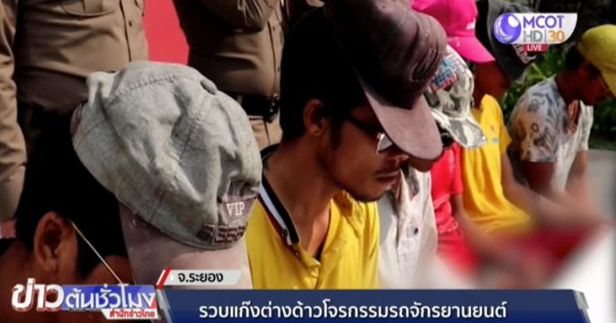 ตำรวจระยองบุกรวบแก๊งโจรกรรมรถ จยย.ชาวกัมพูชา พร้อม จยย. 5 คัน เตรียมไว้รอส่งลูกค้าที่ประเทศกัมพูชา สารภาพรถที่โจรกรรมได้จะนำไปขายคันละ 2,000-15,000 บาท
