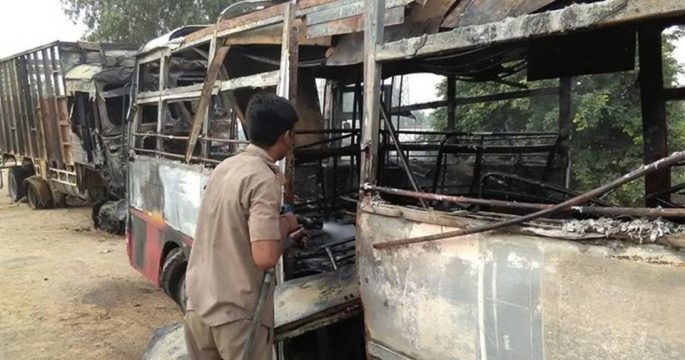 ตำรวจอินเดียกล่าวว่า มีผู้เสียชีวิตอย่างน้อย 22 คนในรถโดยสารที่เกิดไฟไหม้หลังชนกับรถบรรทุกทางเหนือของประเทศวันนี้