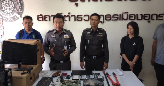 ตำรวจอุดรฯ จับแล้ว หน.ช่างคอมพิวเตอร์จัดฉากบริษัทถูกขโมยยกเค้าคอมพ์ 60 ชุด พร้อมอุปกรณ์อื่นกว่า 600,000 บาท สารภาพหาเงินใช้หนี้