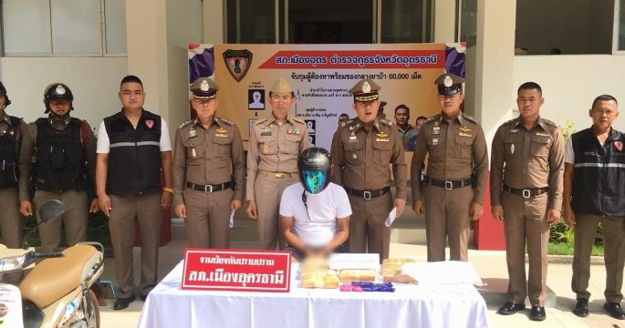 คราวนี้ไม่รอด! ชายวัย 32 ปี รับจ้างส่งยาบ้ามาหลายครั้ง ถูกตำรวจเมืองอุดรฯ ตามรวบกลางถนนพร้อมของกลางยาบ้า 60,000 เม็ด เพิ่งรับมาจากเครือข่ายซุกไว้ข้างทาง