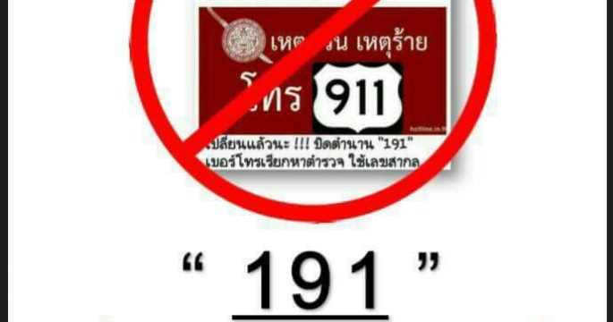 ทีมโฆษก ตร.ยืนยันไม่มีการเปลี่ยนเบอร์ฉุกเฉิน 191 วอนขออย่าส่งข้อมูลผิดต่อในสื่อออนไลน์เพราะจะทำให้ประชาชนสับสน