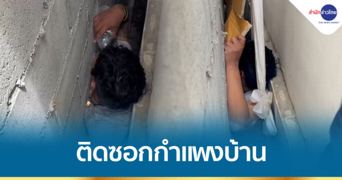 ช่วยชายพลัดตกชั้นสอง ติดซอกกำแพงบ้าน
