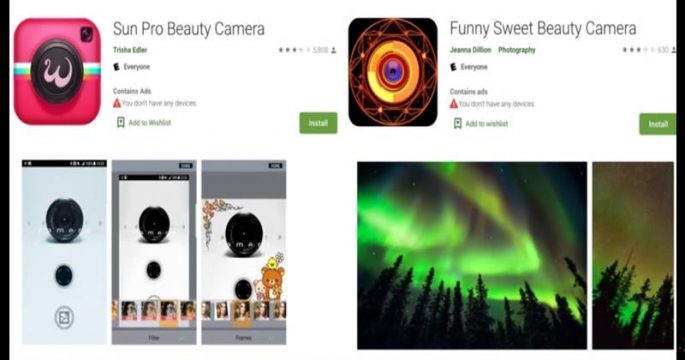 ผู้เชี่ยวชาญเตือนผู้ใช้แอนดรอยด์เลิกติดตั้งแอปถ่ายรูปหน้าสวยสองแอปที่ถูกถอดออกจากเพลย์สโตร์แล้ว หลังจากมีคนดาวน์โหลดรวมกัน 1.5 ล้านครั้ง เพราะพบว่ามีแอดแวร์