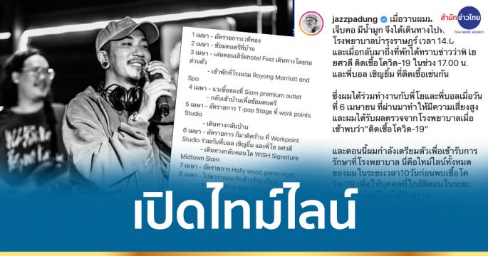 เปิดไทม์ไลน์ “แจ๊ส ชวนชื่น” หลังประกาศติดโควิด-19 มีเล่นคอนเสิร์ตที่ระยอง อัดรายการกับ “บอล เชิญยิ้ม – โย ยศวดี” ไปกินข้าวสยาม