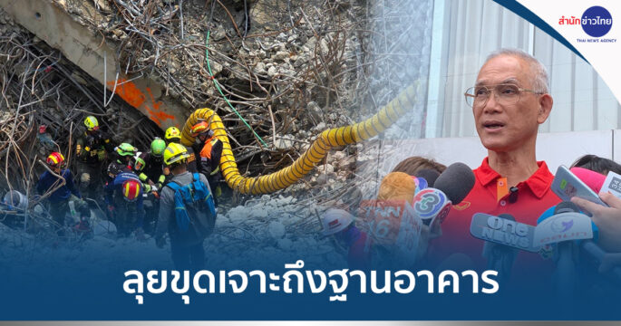 ผอ.ปภ. เผยเดินหน้าขุดเจาะถึงฐานอาคาร แต่ยังไม่พบแสงสว่างหรือสัญญาณชีพ จุดที่ทีมกู้ภัยอ้างพบแสงโทรศัพท์มือถือ