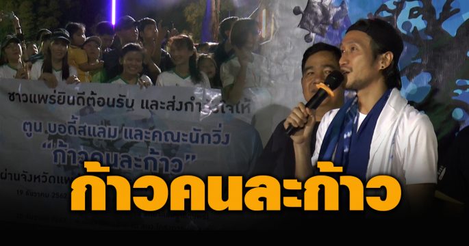 “ตูน บอดี้สแลม” นำขบวนวิ่ง “ก้าวคนละก้าว ก้าวต่อไปด้วยพลังเล็กๆ” ถึงหน้าศาลากลางจังหวัดแพร่ เมื่อค่ำวานนี้ โดยมีประชาชนชาวแพร่มารอต้อนรับเป็นจำนวนมาก