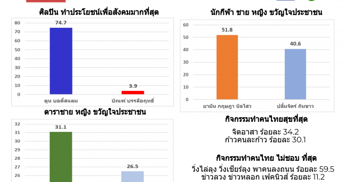 ซูเปอร์โพล เสนอผลสำรวจ บุคคลแห่งปี 2562พบ ศิลปินบุคคลแห่งปีทำประโยชน์เพื่อสังคมมากที่สุด อันดับที่หนึ่ง ได้แก่ ตูนบอดี้ สแลม