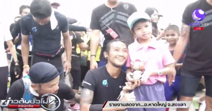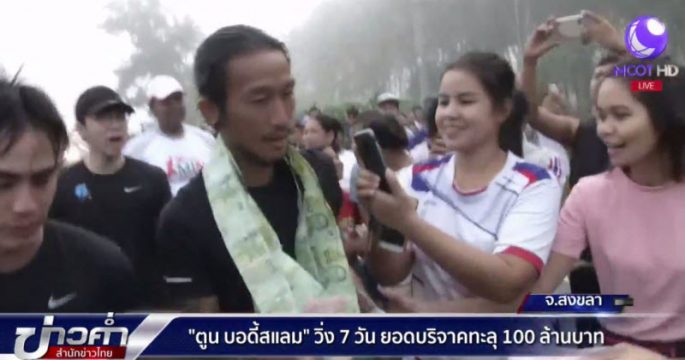 วันที่ 7 ของการวิ่งก้าวคนละก้าวเพื่อ 11 โรงพยาบาลทั่วประเทศของ “ตูน บอดี้สแลม” ได้รับการต้อนรับอย่างเนืองแน่นจากชาว จ.สงขลา ทำให้การวิ่งต้องล่าช้าจากแผนการวิ่งที่วางเอาไว้