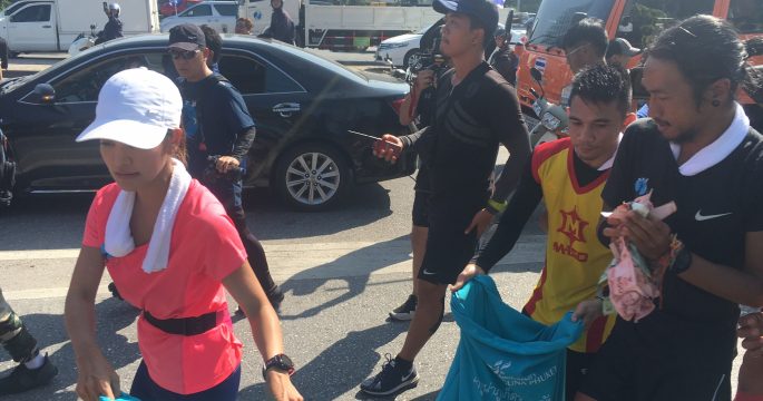 ‘ตูน’ บอดี้สแลม และคณะนักวิ่งโครงการ ก้าวคนละก้าว พักทานอาหารและทำกายภาพบำบัด หลังออกวิ่ง 2 เซ็ท รวมระยะทางเกือบ 30 กิโลเมตร
