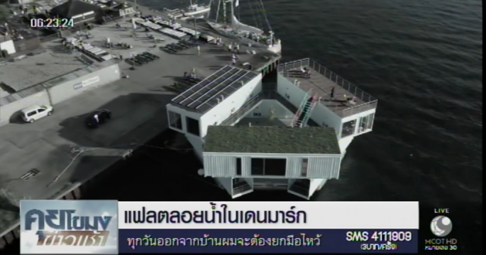 แฟลตลอยน้ำที่สร้างจากตู้คอนเทนเนอร์ที่ท่าเรือโคเปนเฮเกน มีลักษณะคล้ายงานศิลป์แต่เป็นตัวอย่างของการแก้ปัญหาที่อยู่อาศัย