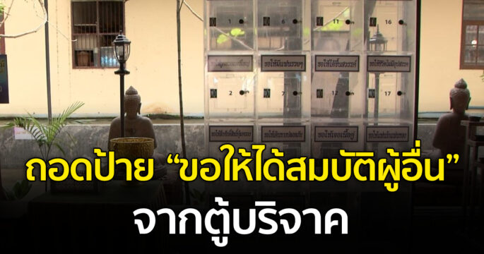 วัดท่าไม้ถอดป้าย “ขอให้ได้สมบัติผู้อื่น” จากตู้บริจาค