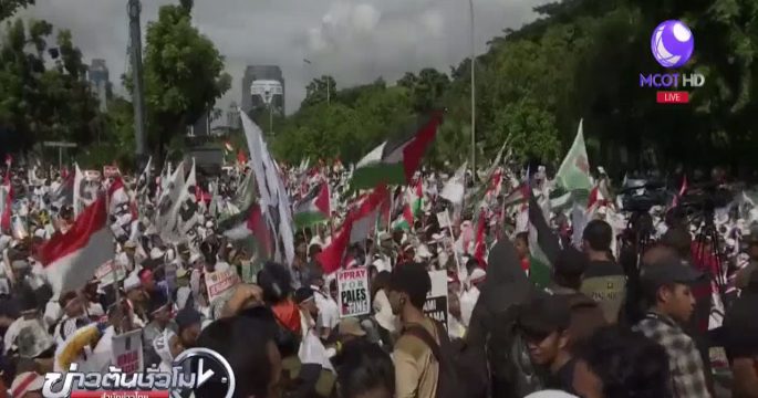 ชาวอินโดนีเซียหลายพันคน ยังคงชุมนุมประท้วงที่หน้าสถานทูตสหรัฐ ในกรุงจาร์กาตา เนื่องจากไม่พอใจที่ประธานาธิบดีโดนัลด์ ทรัมป์ของสหรัฐฯ ประกาศรับรองกรุงเยรูซาเลมเป็นเมืองหลวงของอิสราเอล