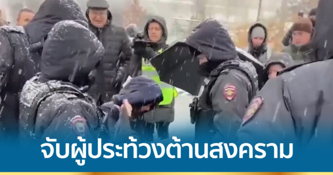 ตำรวจรัสเซียจับกุมกลุ่มผู้ประท้วงต่อต้านปฏิบัติการทางทหารของรัสเซียในยูเครน