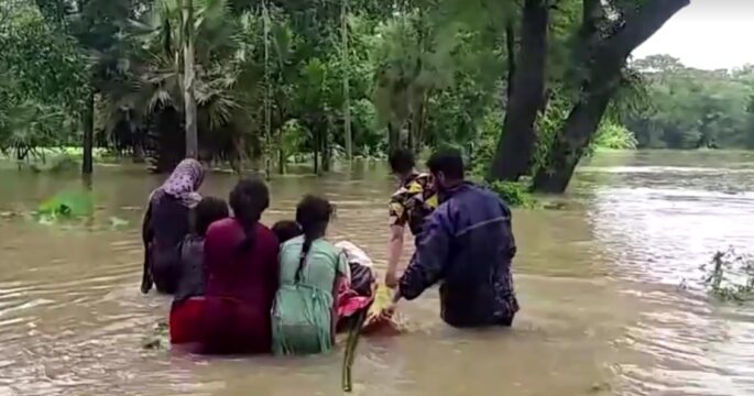 ชาวบังกลาเทศตัดต้นกล้วยทำเป็นแพ ใช้อพยพคนออกจากชุมชนที่ถูกน้ำท่วมครั้งใหญ่ในรอบหลายทศวรรษ