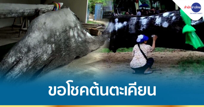 อัญเชิญต้นตะเคียนขึ้นจากน้ำ คอหวยไม่พลาดแห่ส่องลุ้นเลขเด็ด