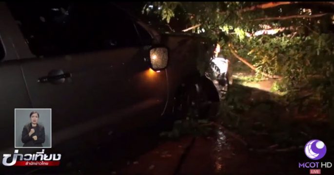 พายุกระหน่ำชุมพร ต้นไม้ล้มขวางถนนหลายจุด ทับรถยนต์เสียหาย