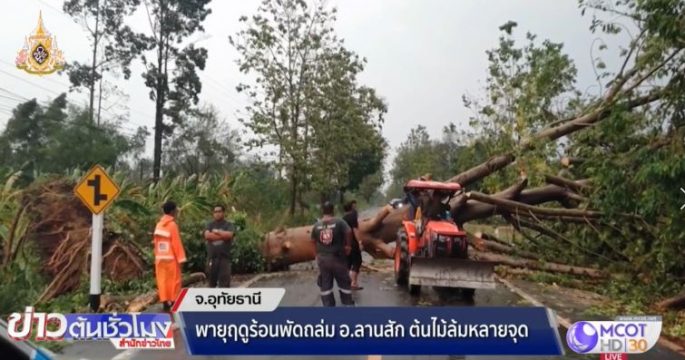 เกิดลมฝนกระโชกแรงหลายพื้นที่จังหวัดอุทัยธานี ต้นไม้หักโค่น เสาไฟล้ม 23 ต้น ไฟดับเป็นวงกว้าง