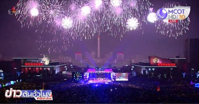 เกาหลีเหนือ จุดพลุดอกไม้ไฟฉลองต้อนรับปีใหม่ เหนือแม่น้ำแตดง ส่วนเกาหลีใต้ แสดงพลุดอกไม้ไฟและเลเซอร์ฉลองปีใหม่ ท่ามกลางนักท่องเที่ยวนับหมื่นคน