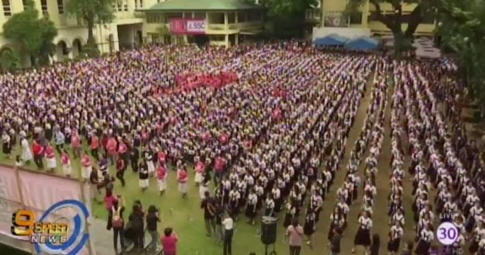 นักเรียน นักศึกษา คนงานและแม่ชีหลายพันคนเข้าร่วมกิจกรรม การเต้นครั้งใหญ่ในกรุงมะนิลาของฟิลิปปินส์ เพื่อส่งเสริมการรณรงค์ความรุนแรงต่อผู้หญิง