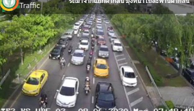 สวพ.FM91 รายงานจราจรเช้าวันอังคาร ถนนกรุงธนบุรี ขาเข้า ข้ามสะพานตากสิน รถมาก ส่วนถนนดินแดง จากใต้ด่วนดินแดง มุ่งหน้าแยกสามเหลี่ยมดินแดง รถติด
