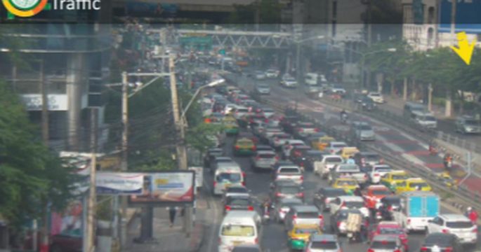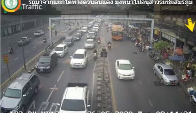 สวพ.FM 91 รายงานจราจรเช้าวันอังคาร ถนนดินแดง ขาเข้า จากใต้ด่วนดินแดง มุ่งหน้าอนุสาวรีย์ชัยฯ ติดขัด